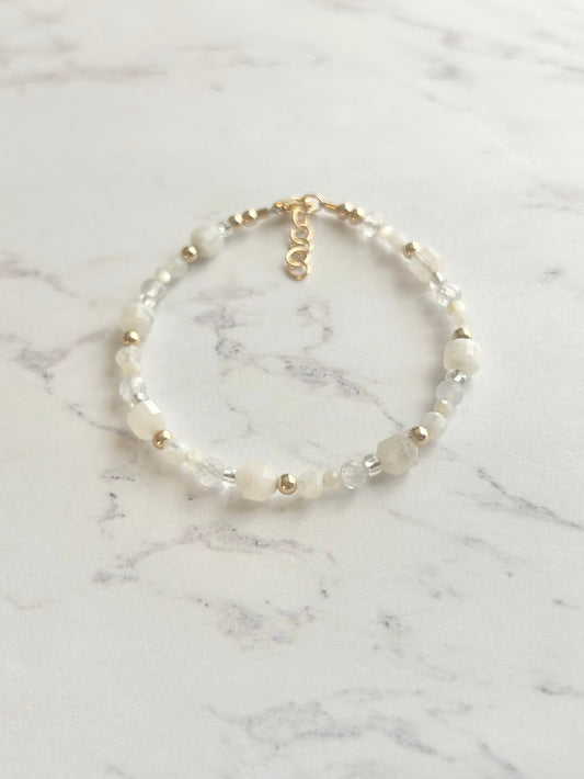 I added a moonstone heart tk this bracelet and paired it with a lonk bracelet for a perfect, summer stack! I've been wearing it for 6 months and its still as beautiful as ever!