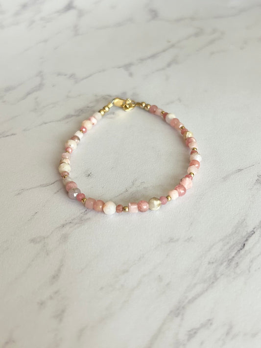 I love this bracelet! I have it paired with a gold w/ moonstone heart and its the perfect girly set! A staple this summer ☀️