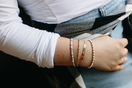 Timeless + Cozy neutral vibes and chains with texture + size are all the rage this season. Pair a couple fall inspired favorites with your everyday sentimental piece like your Morse code or birthstone bracelet for the perfect everyday set!