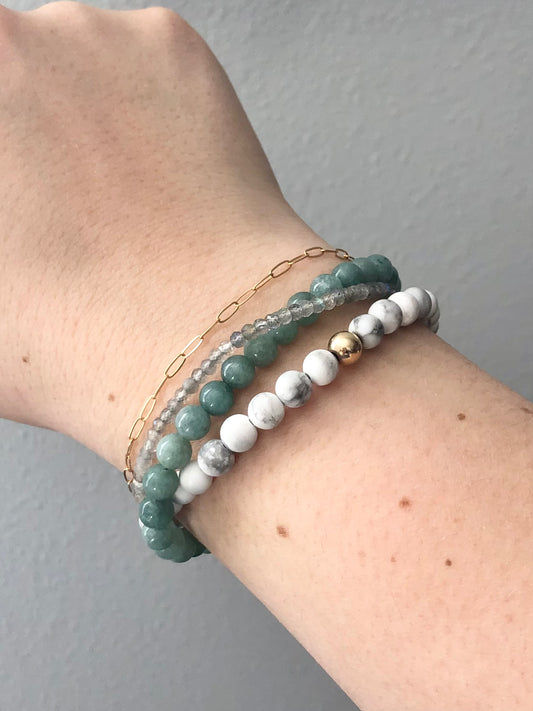 Gold Saucer Sea Foam Amazonite Bracelet.