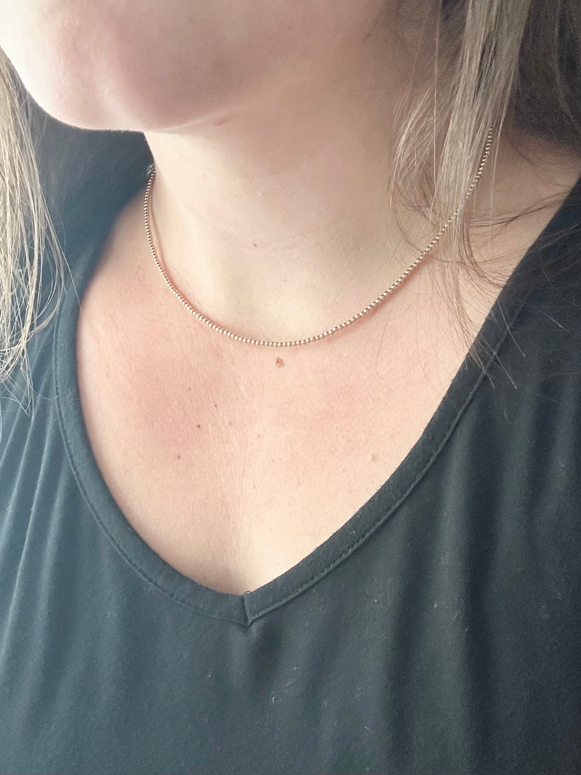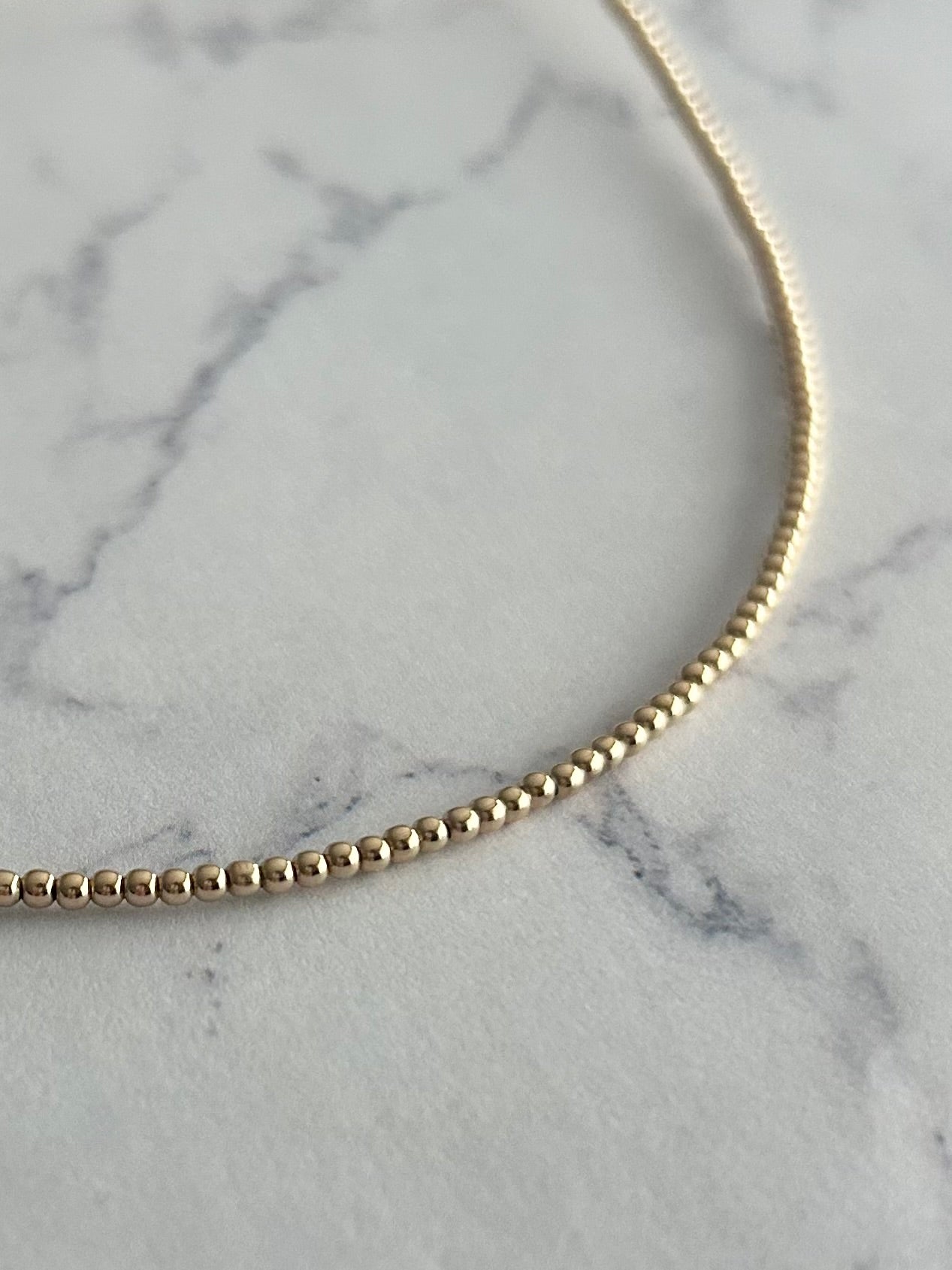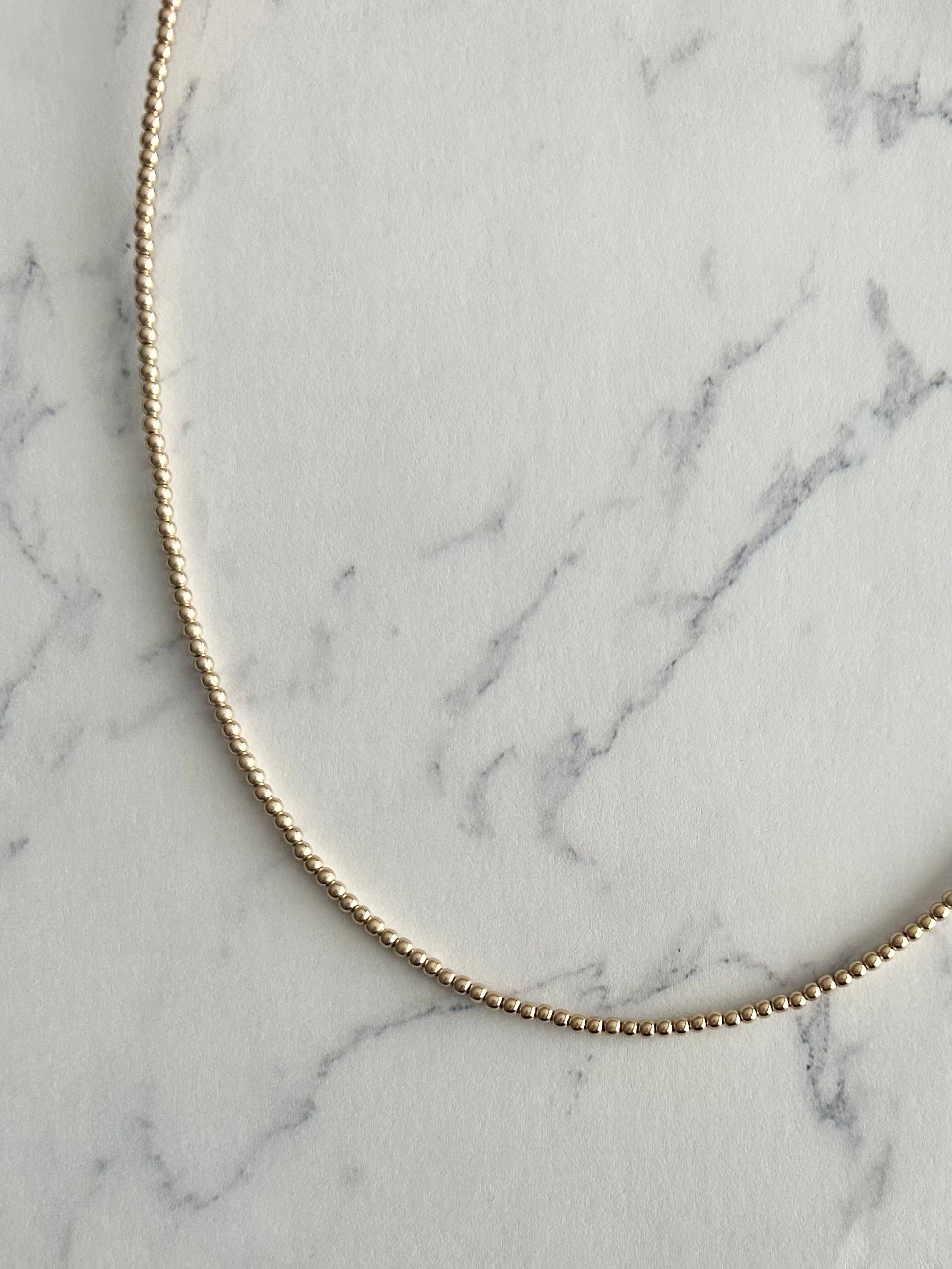 We have all the heart eyes for this 2mm Gold Beaded Necklace! Wear it as the perfect short layer in a necklace look or style it as a gorgeous stand alone piece you put on and wear 24/7!