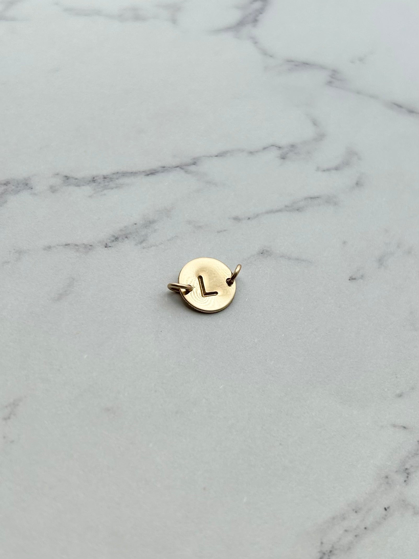 Add a sweet touch of personalization to your custom jewelry with our initial gold filled disk charm!