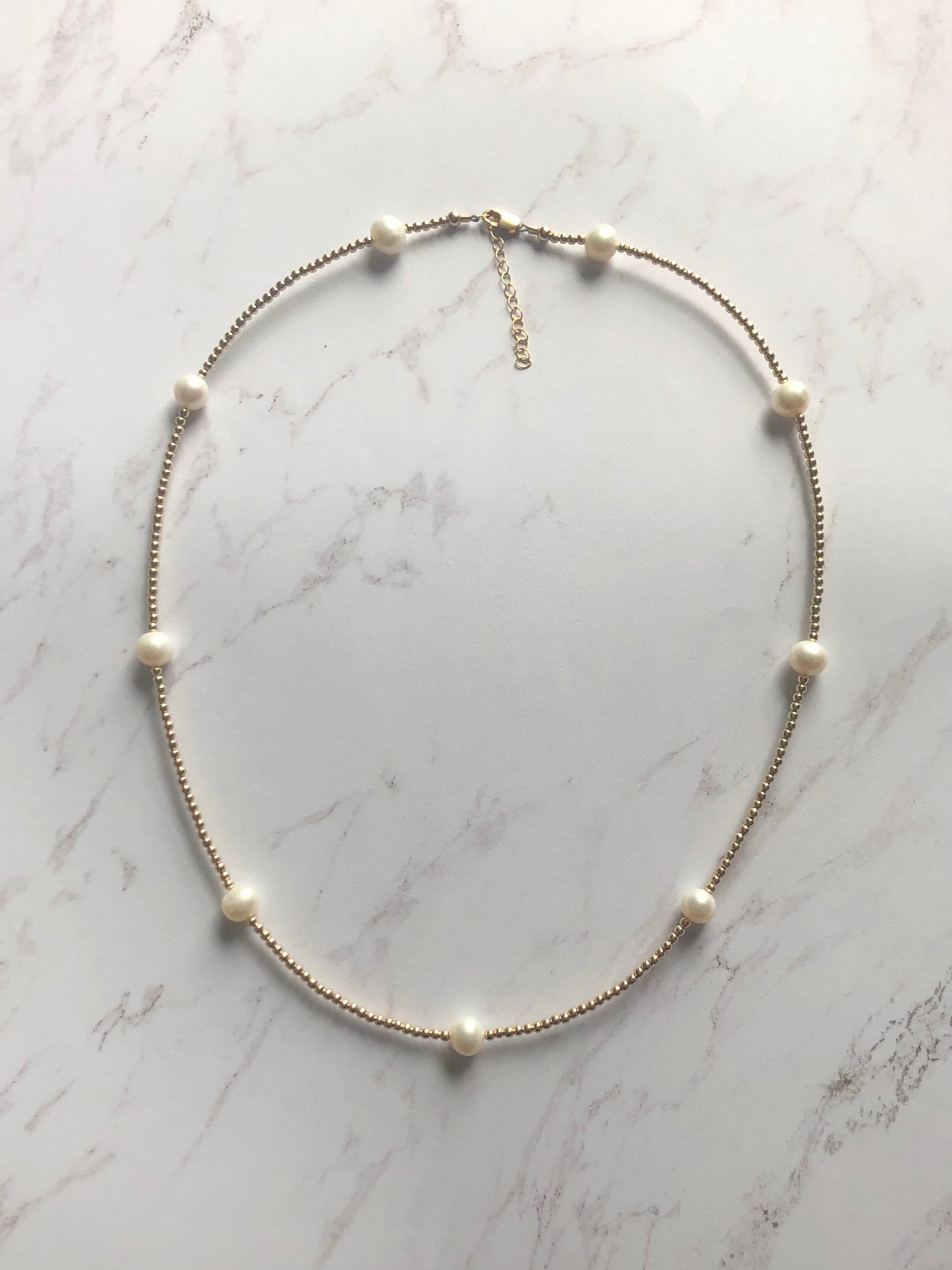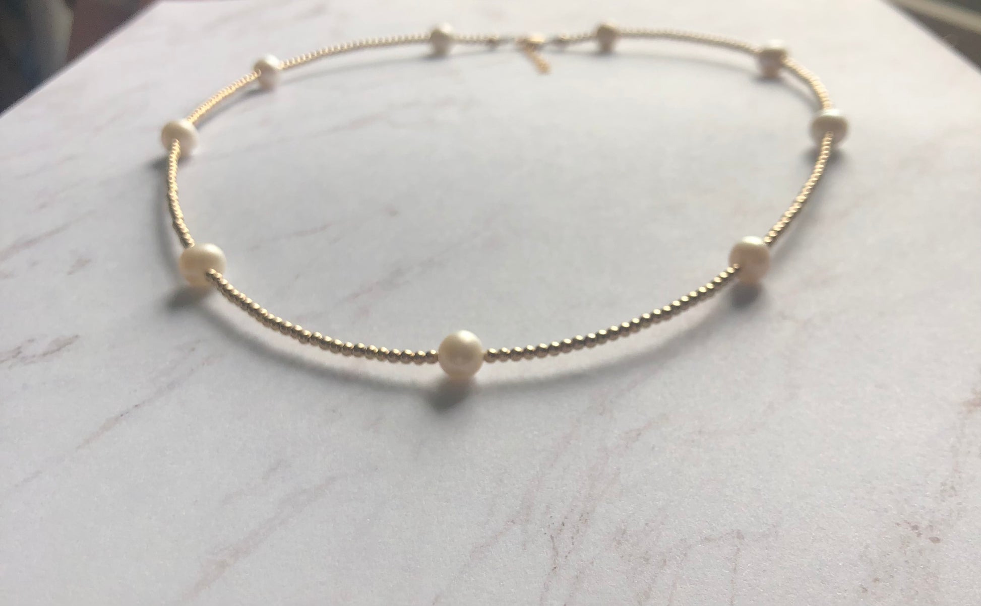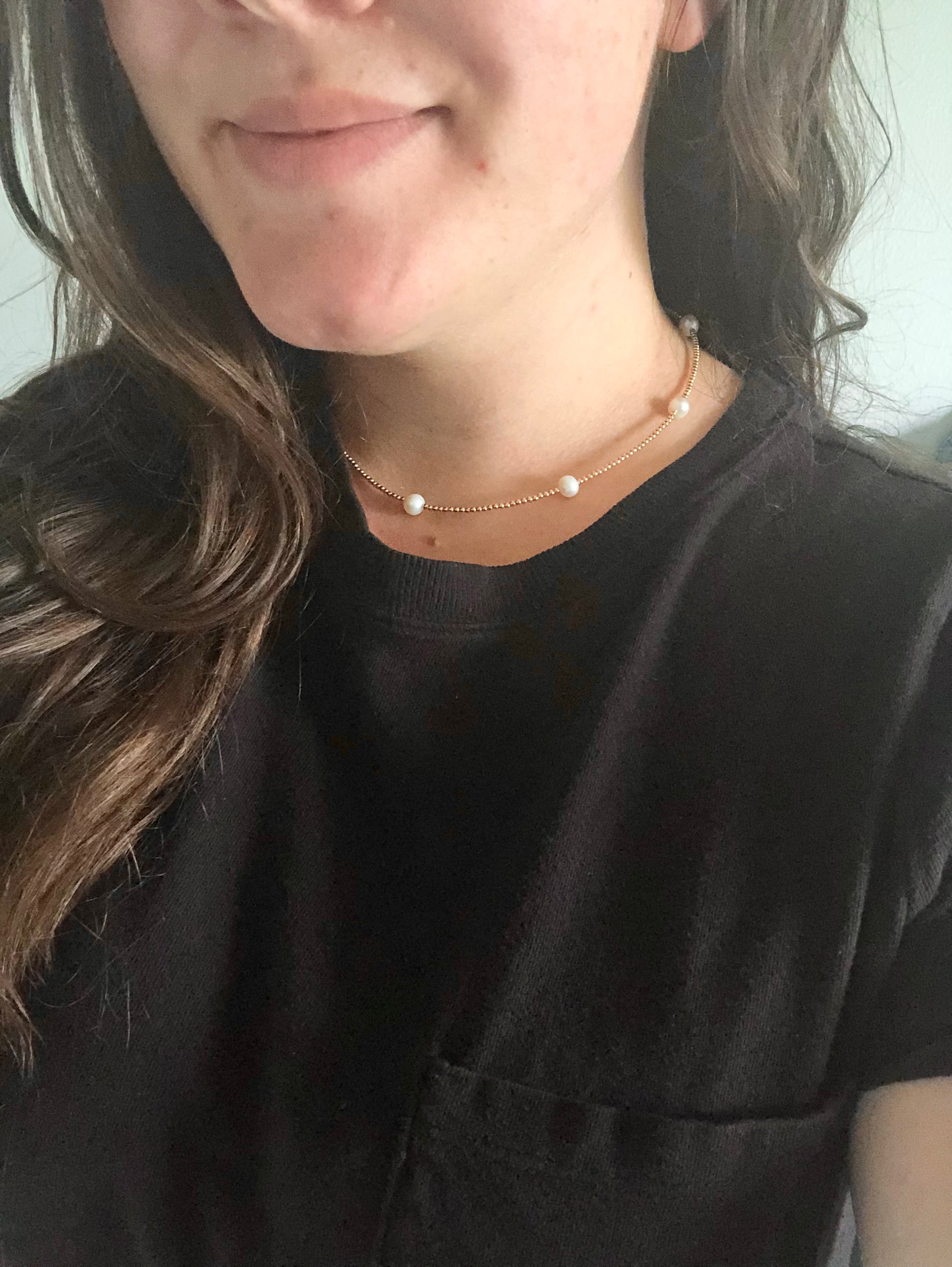 This pearl necklace is everything Chic + durable. The perfect everyday statement necklace for you pearl lovers like me! Tarnish resist a materials you can wear in the shower, sleeping, anywhere life takes you.