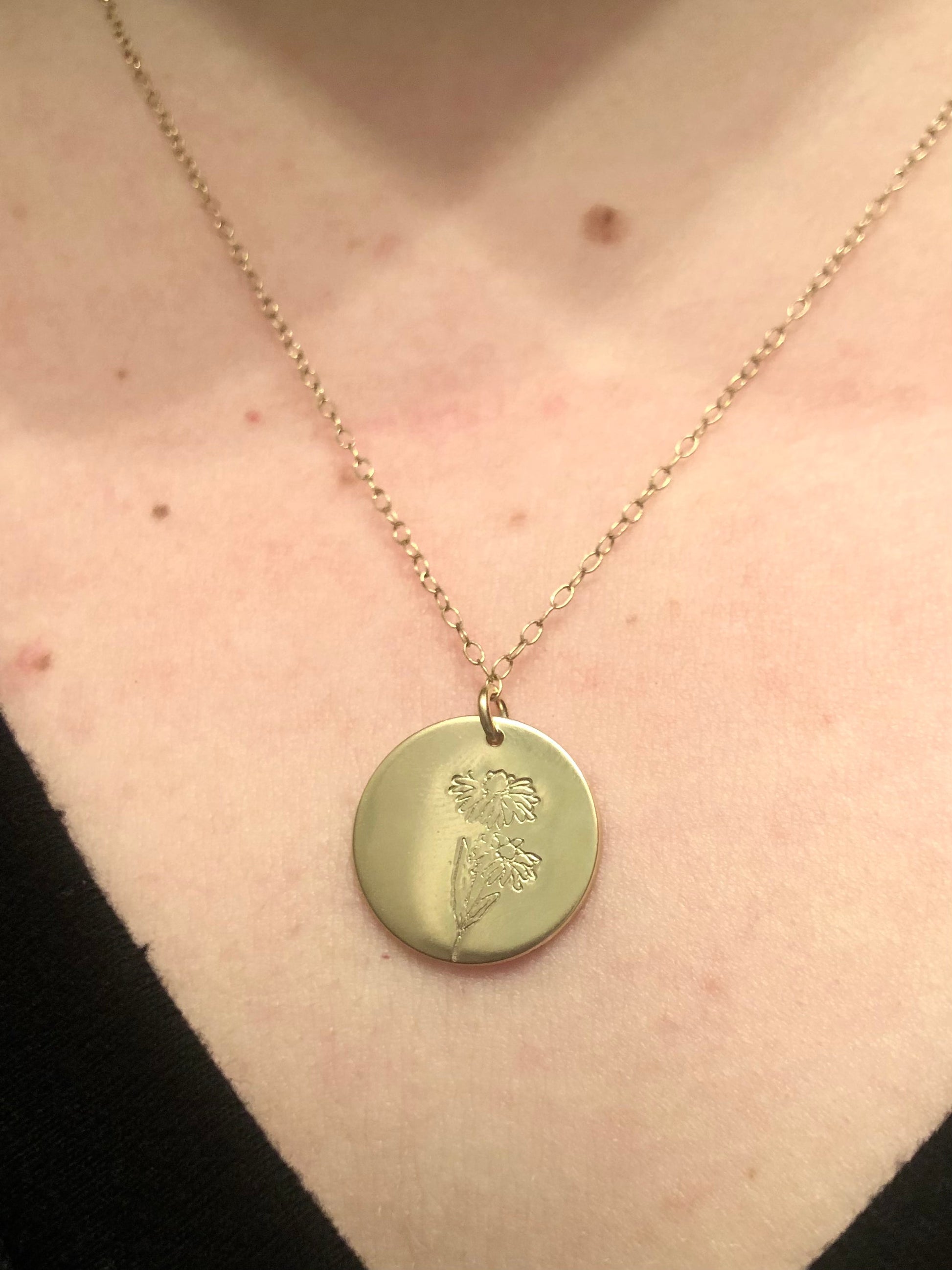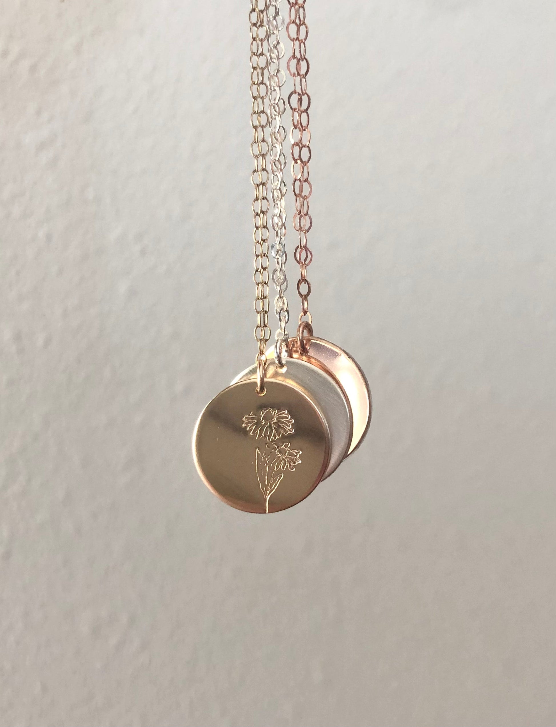 Do you want to add an extra charm to your necklace? These birth flower charms are gorgeous! They pack a minimal statement with their shiny smooth finish and 16mm diameter (about the size of a quarter).