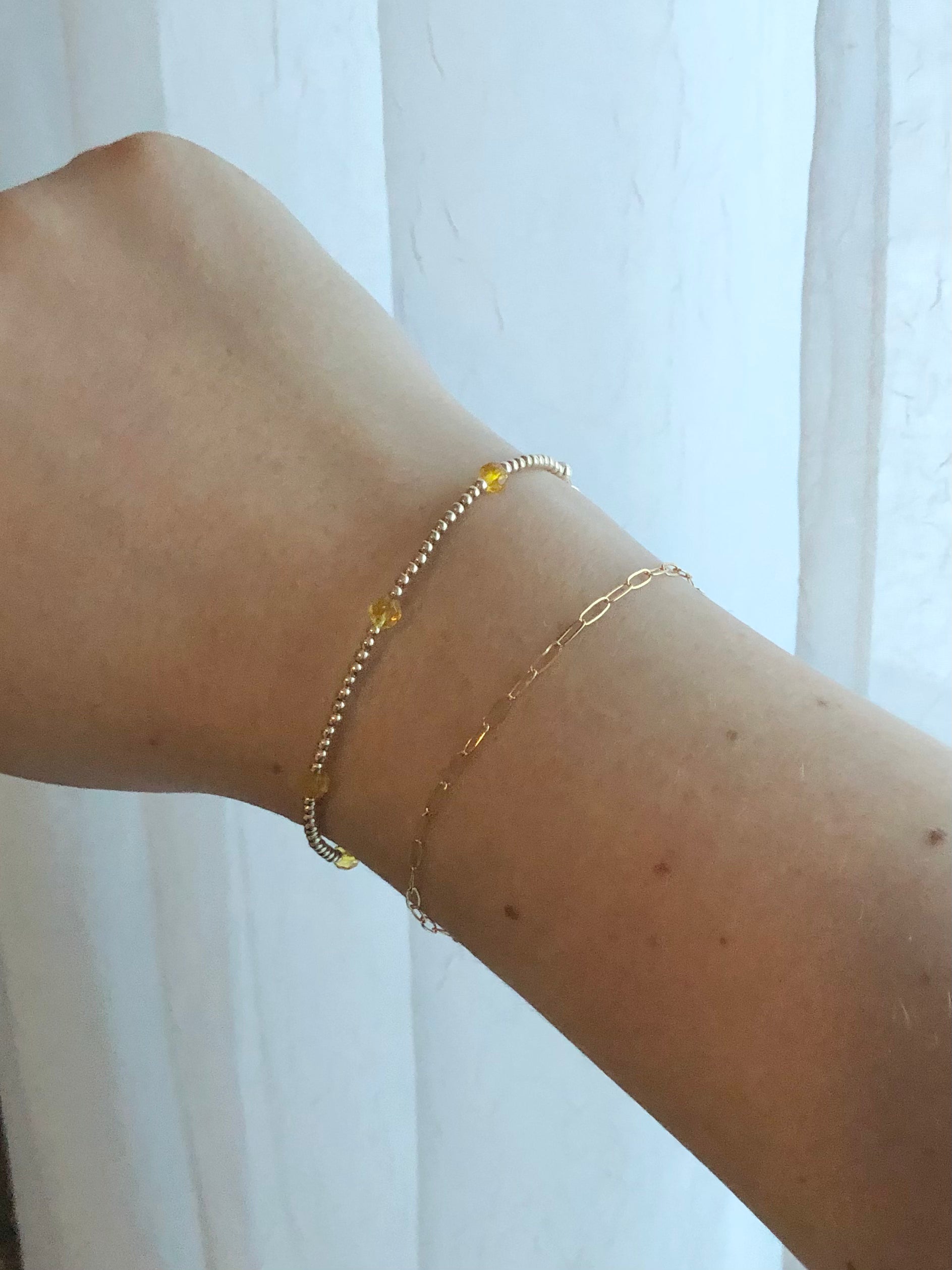 Looking for an accessory that is minimal + chic yet meaningful + special? The NEW style monthly gemstone bracelets are the perfect tarnish resistant piece you can put on and leave on 24/7 for that sentimental touch to your everyday style.