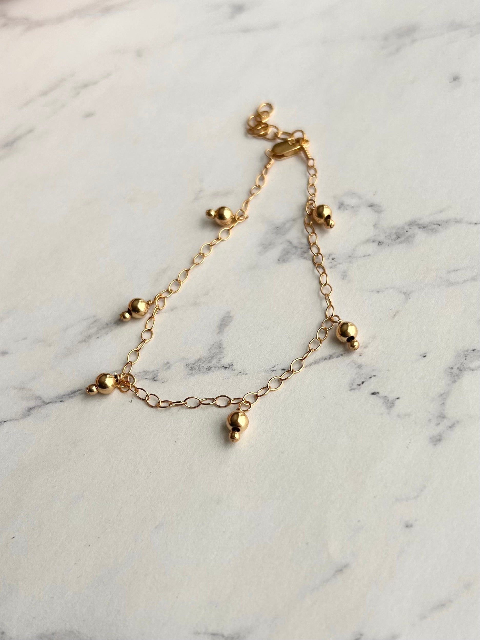 She's fun. She has personality. She brings the perfect texture to our everyday bracelet stack! Pair the Dainty Drop Charm Bracelet with a sentimental bracelet and a neutral for the perfect effortless accessorized look that you'll love wearing day after day!
