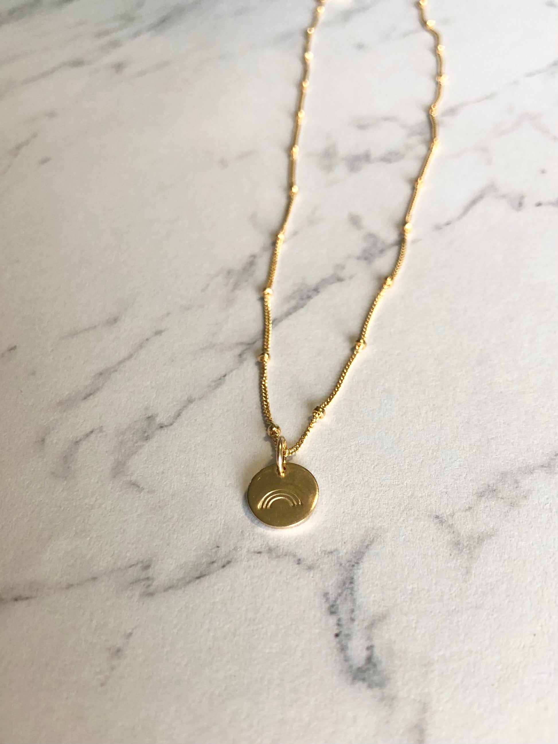 Not only does it add a sweet touch but it’s also made to our high standards with a gold filled disk charm and ring that is hand stamped by me.