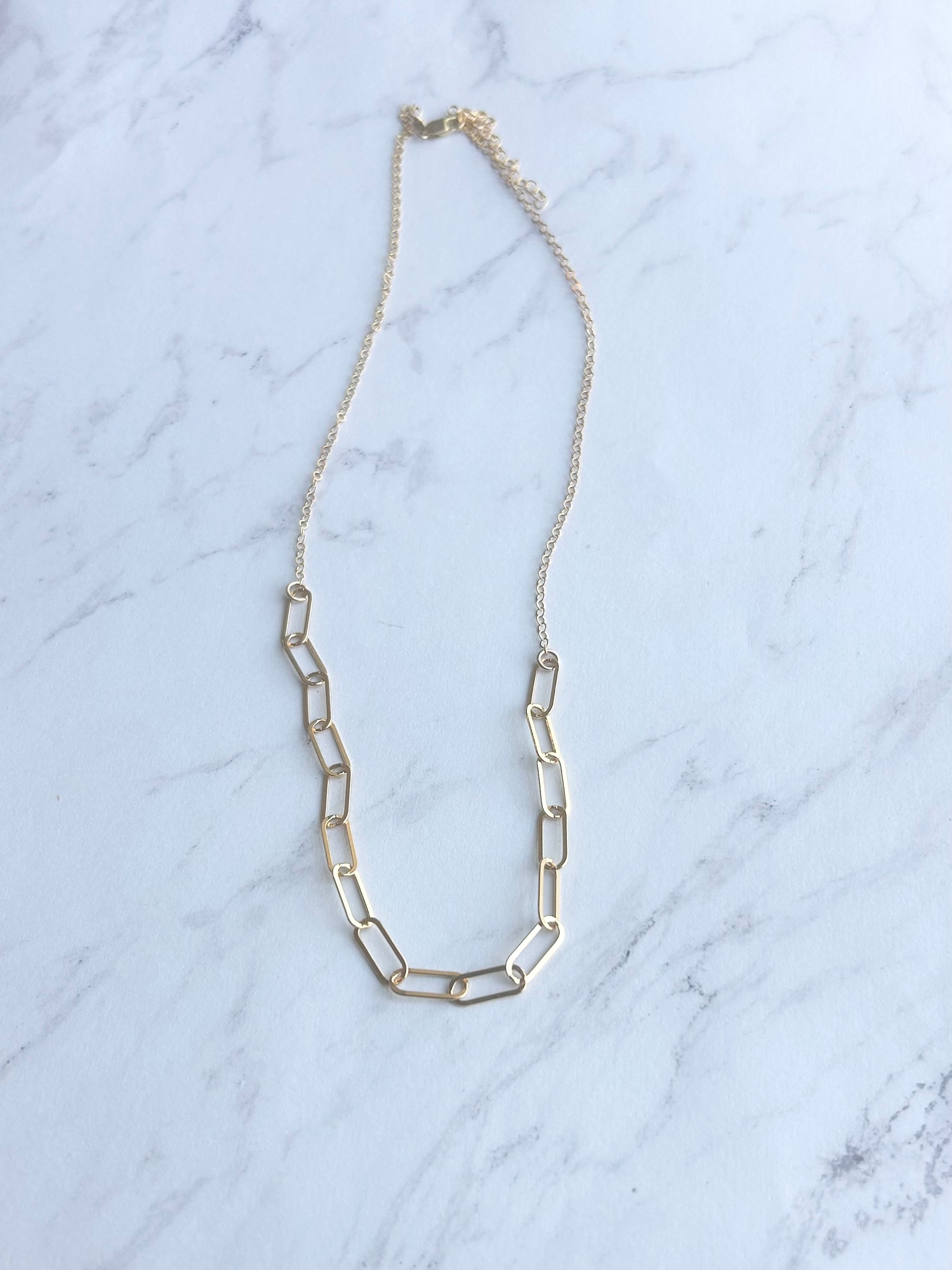 Yes, I had to triple check "halfsies” was spelt right- but one thing you won’t have to double check is what a stylish steal this beauty is! Get the look of the rich, big paperclip chain with out the bulk and at a lower price.