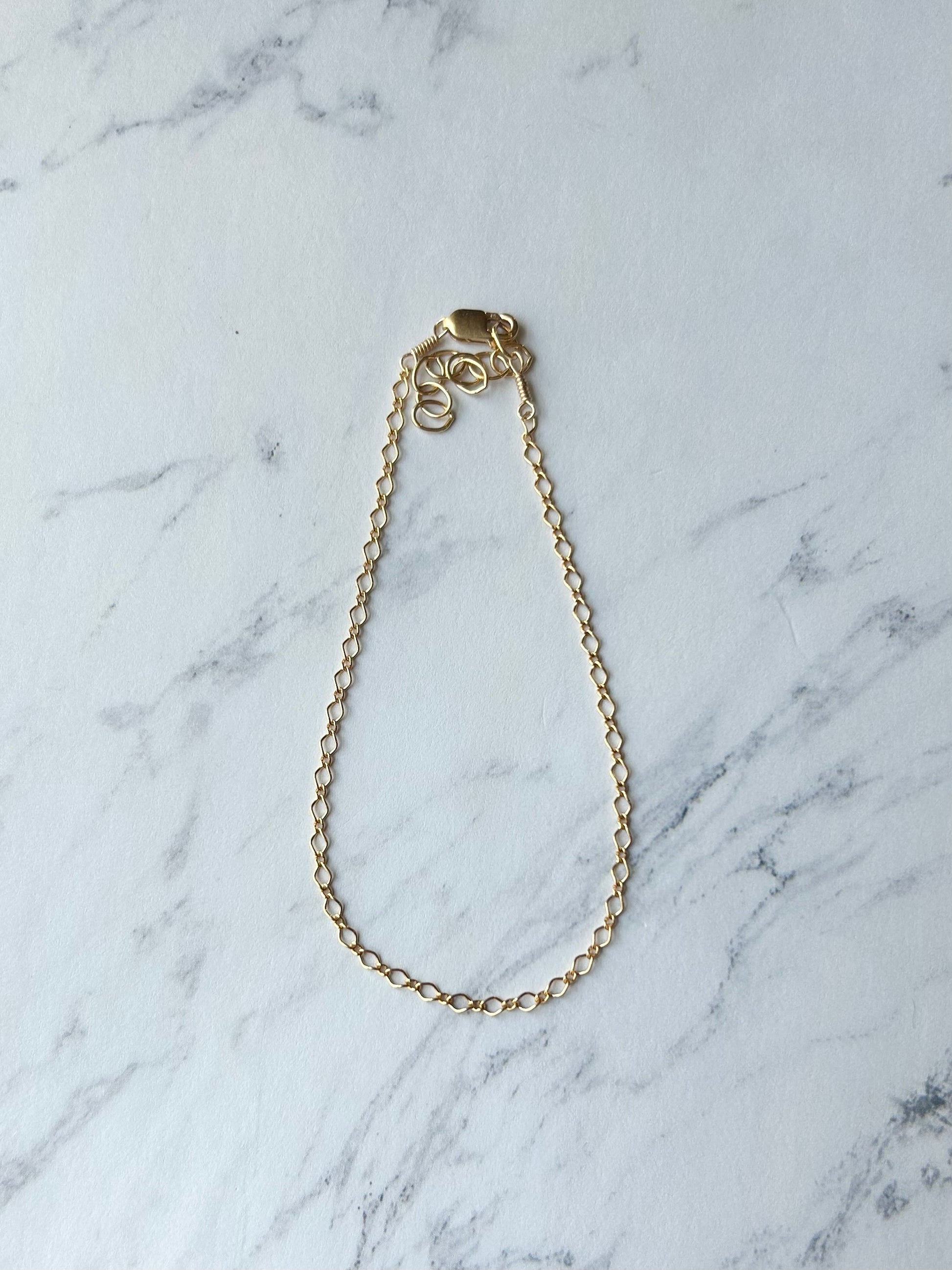Everyone loves a dainty feminine anklet! This simple chain anklet is the perfect 24/7 accessory. Gold filled means your anklet is tarnish resistant and won’t be bothered by you or your littles bath/ shower or swim in the lake. What are you waiting for?! You need this jewelry staple in your collection.