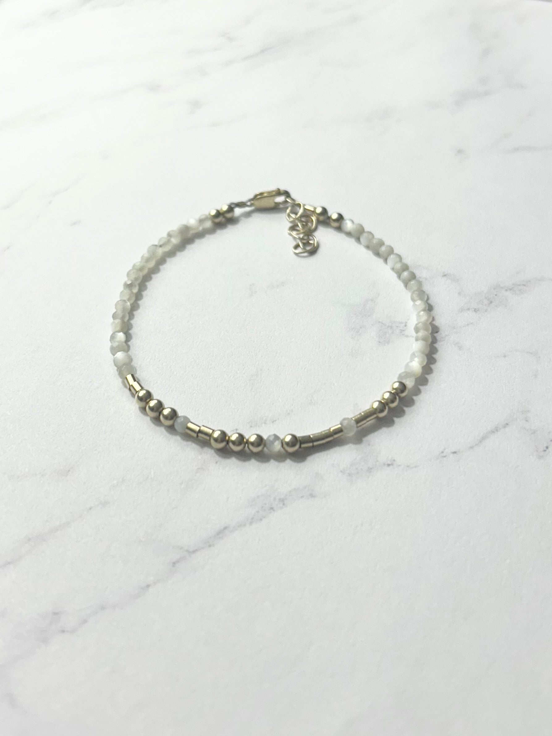 Mini Mother of Pearl Personalized Morse Code Bracelet