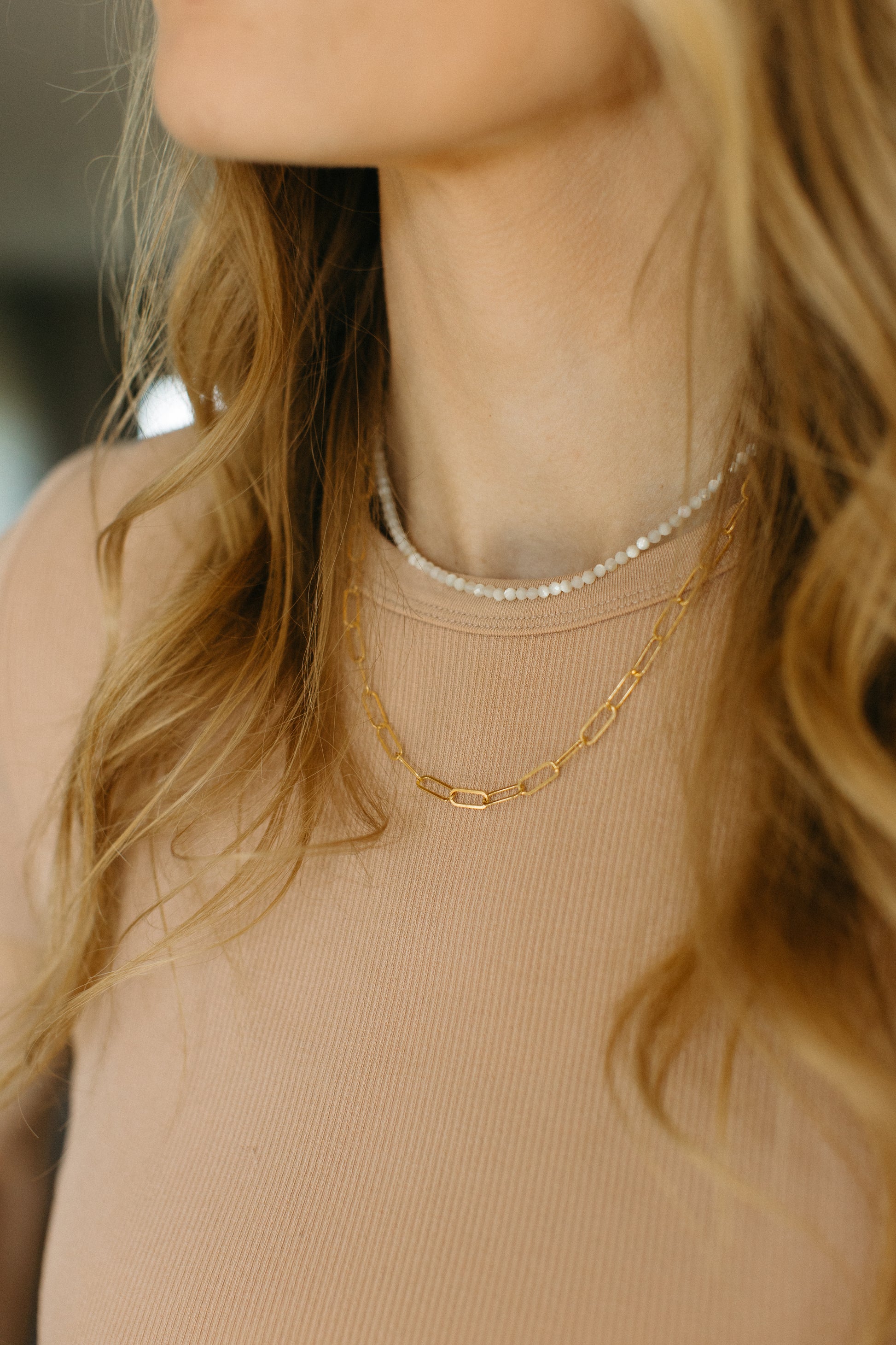 Who here is loving the tiny beaded necklace trend?! This is the perfect timeless, understated piece to add to your collection and elevate your everyday accessorizing style. It is such a statement alone and pairs beautifully with a longer pendent chain necklace like our initial necklaces.