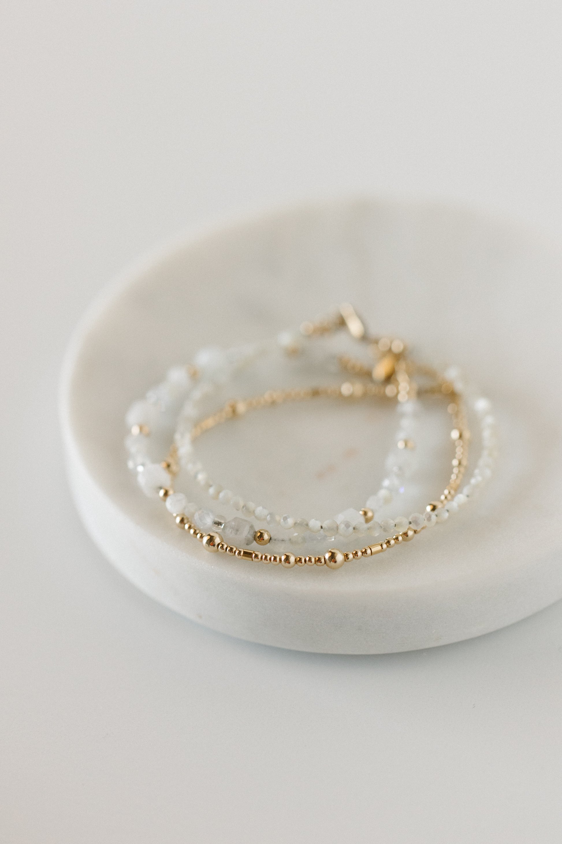 Simply + neutral. Exactly what you need for an everyday stack! This duo is gorgeous paired with a solid metallic bracelet and/ or a personalized piece like a mothers bracelet or morse code bracelet.