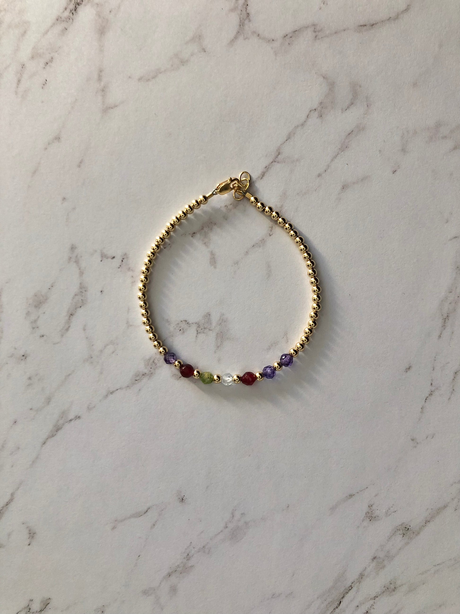 Bead sizes: 3mm metal beads and 4mm birthstone beads