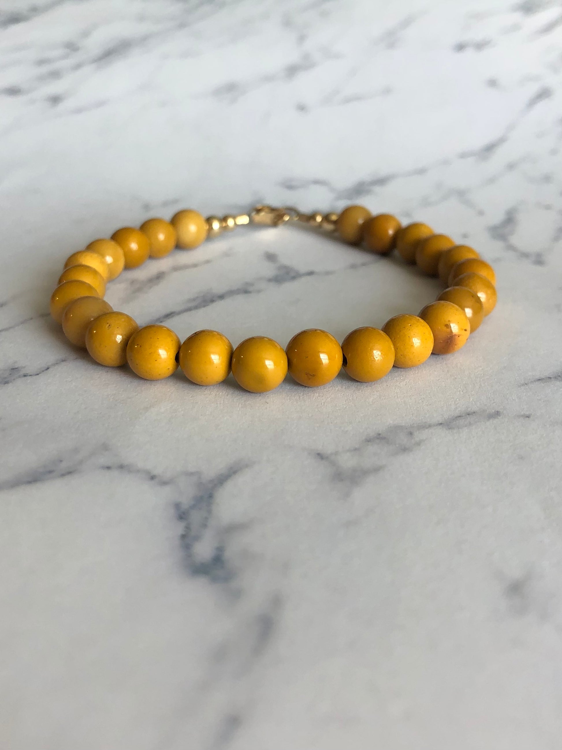 Everyone's favorite warm and cheery color in a fan favorite size + shape! This mustard gemstone bracelet gives all the feels for the changing season!