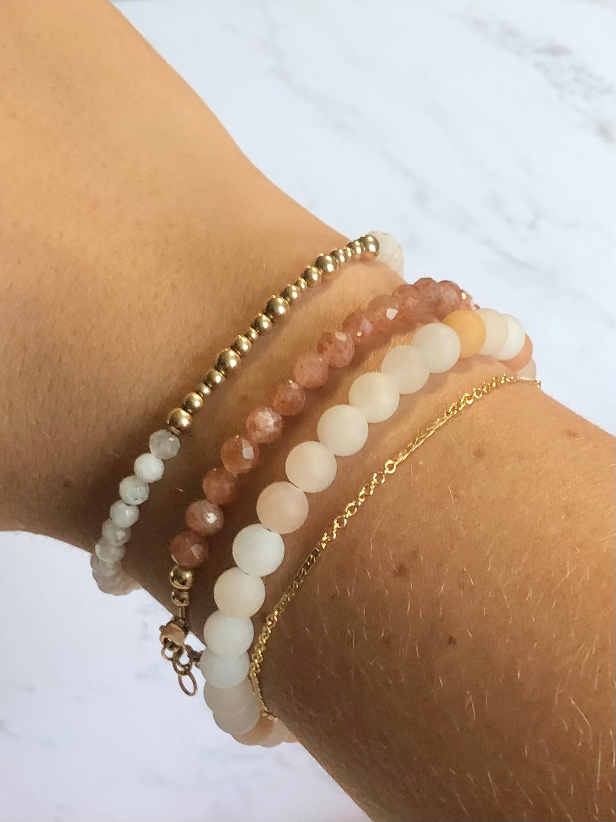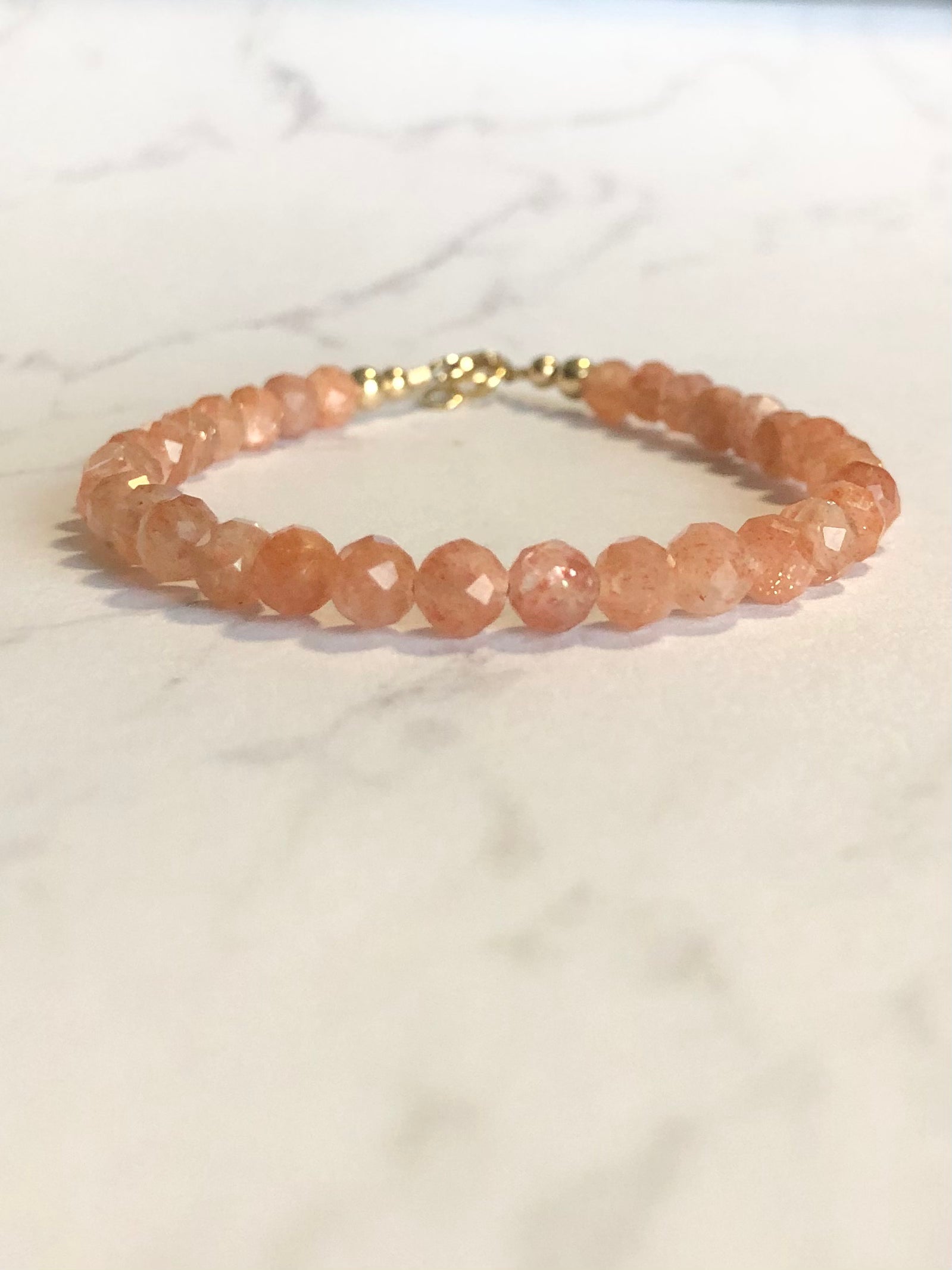 This peach sunstone is so gorgeous and the perfect "neutral" color you need in your stack! It compliments any skin tone perfectly making it an easy everyday accessory.