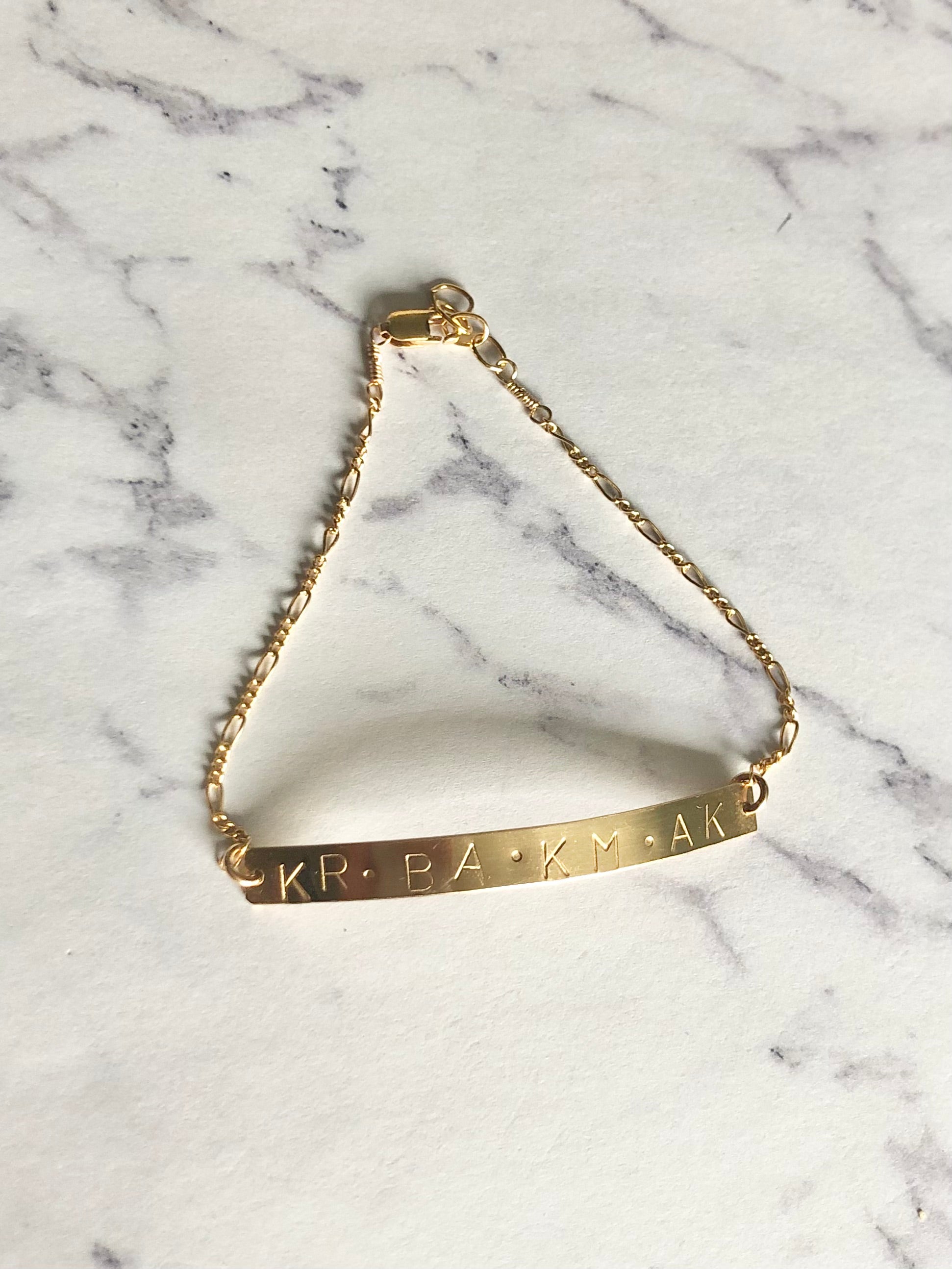 Hello, Chic +gorgeous Personalized Bar Chain Bracelet! Now this is what I call a classic statement piece that you definitely need as an everyday go to. Here are some personalization ideas: