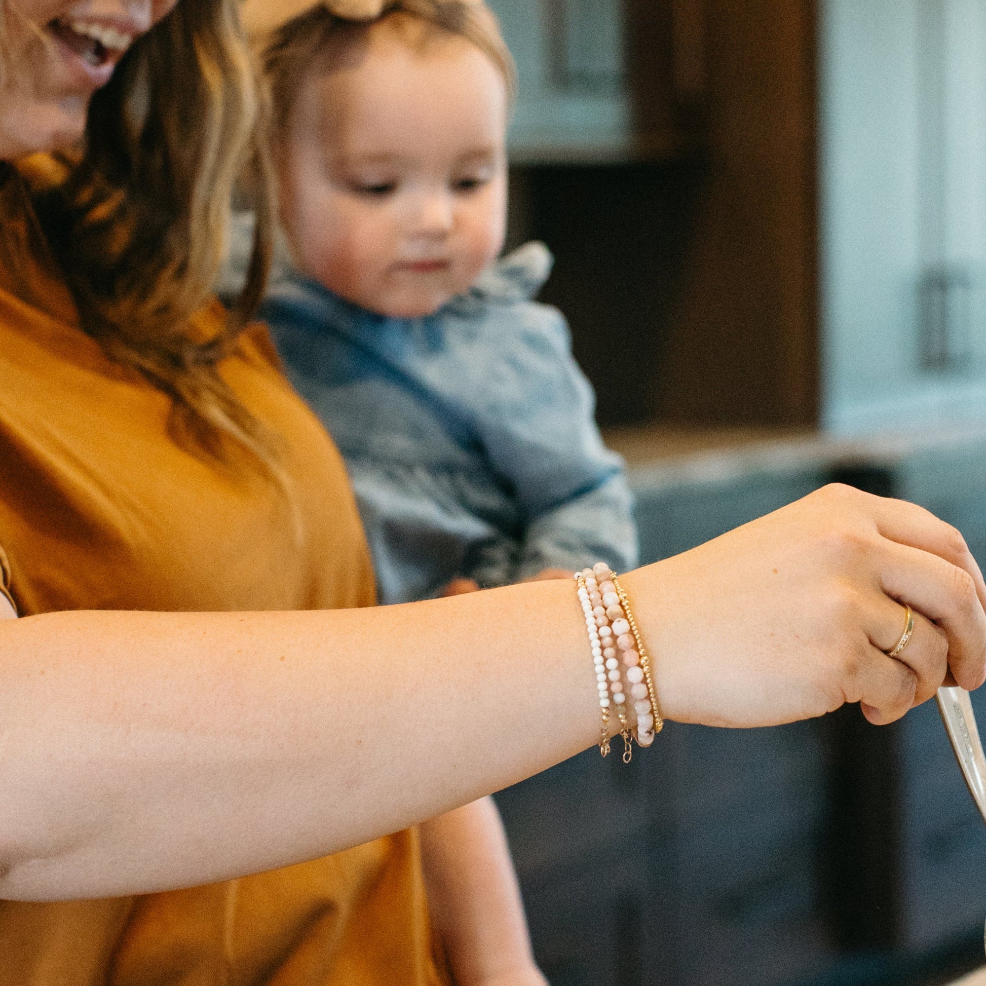 14k Gold Filled and Sterling Silver metals means your bracelet is tarnish and rust resistant. We wear ours around the clock (even in the tub/ shower!) Our jewelry is made with small parts so we recommend all our jewelry is worn with adult supervision.