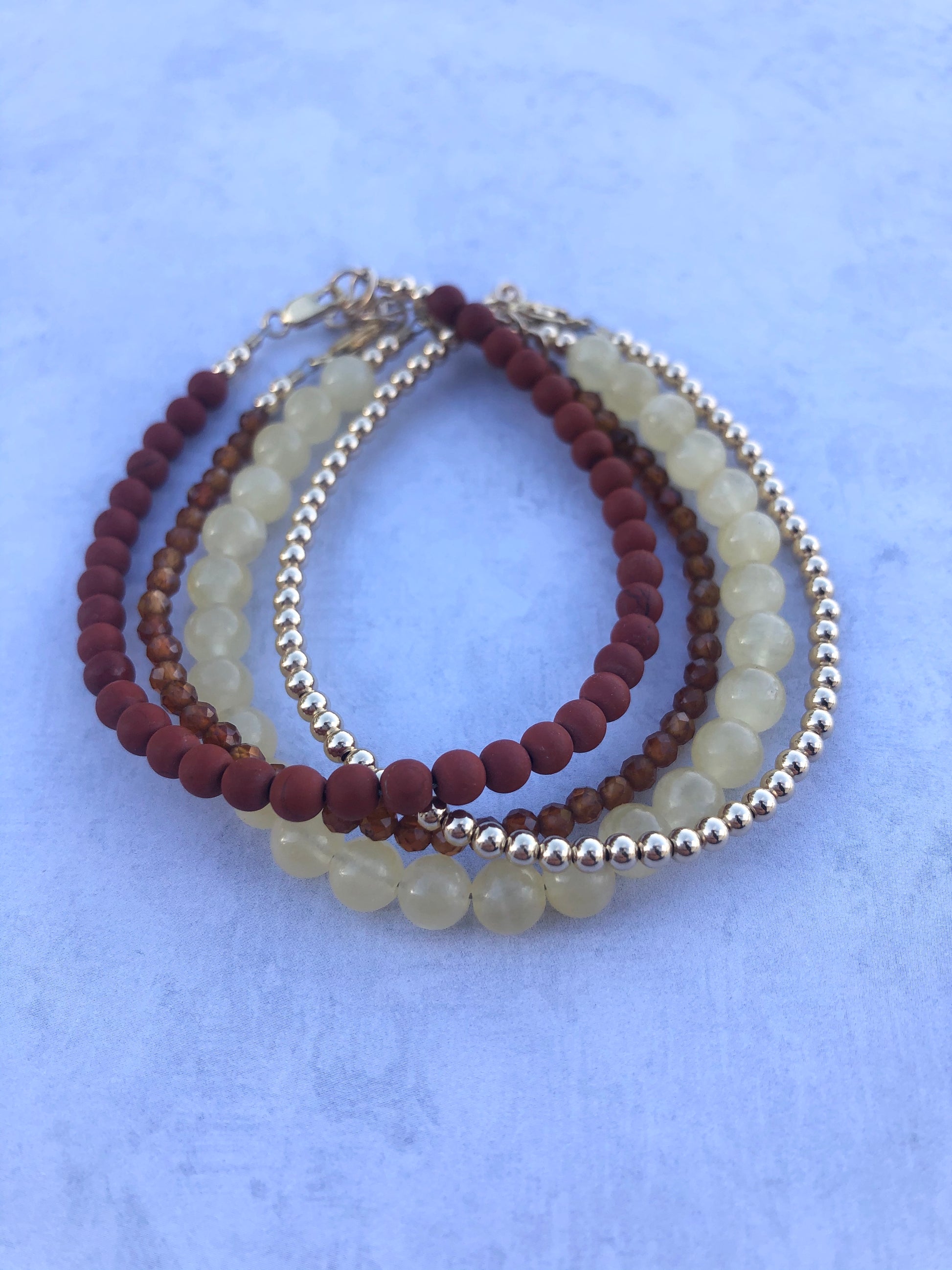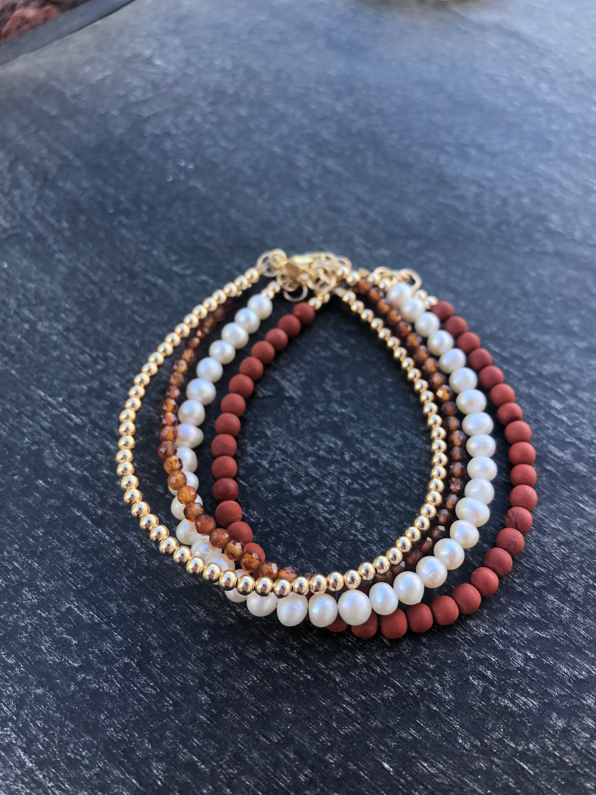 14k Gold Filled and Sterling Silver metals means your bracelet is tarnish and rust resistant. We wear ours around the clock (even in the tub/ shower!)