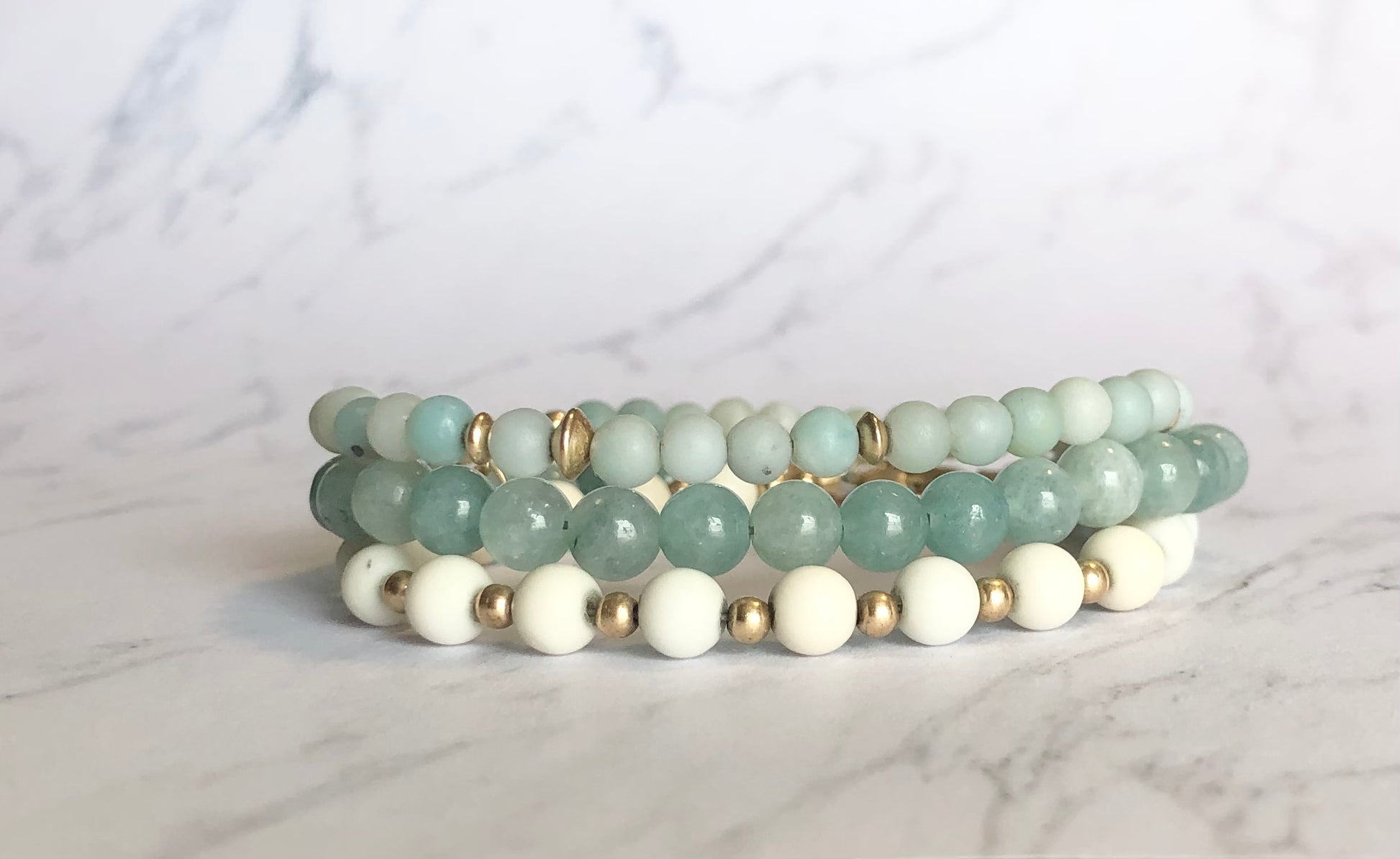 Sage has been all the rage lately in everything from fashion to home and we are all for it. Grab a stack focused around this gorgeous cool, mellow color for effortless accessorizing.