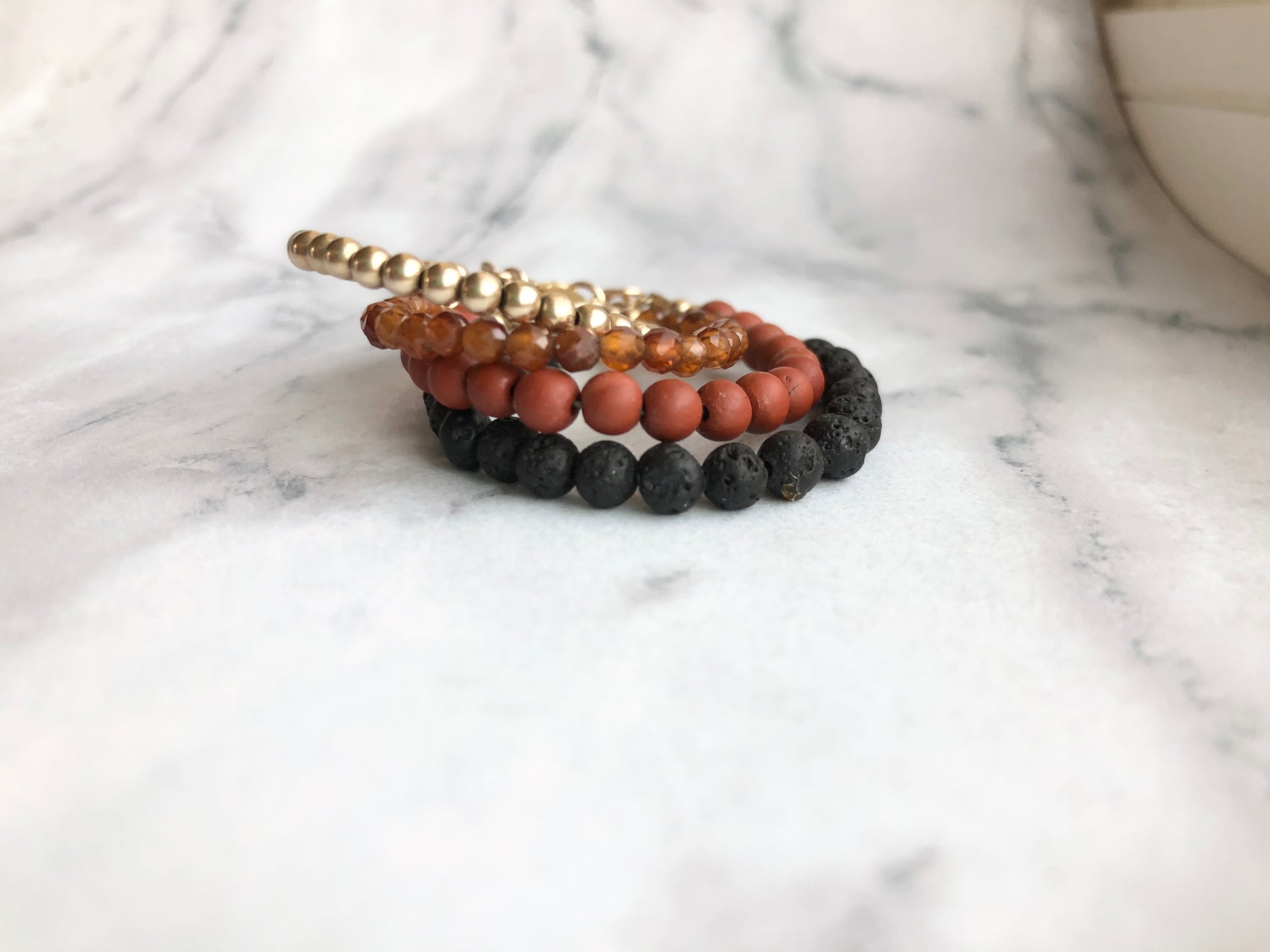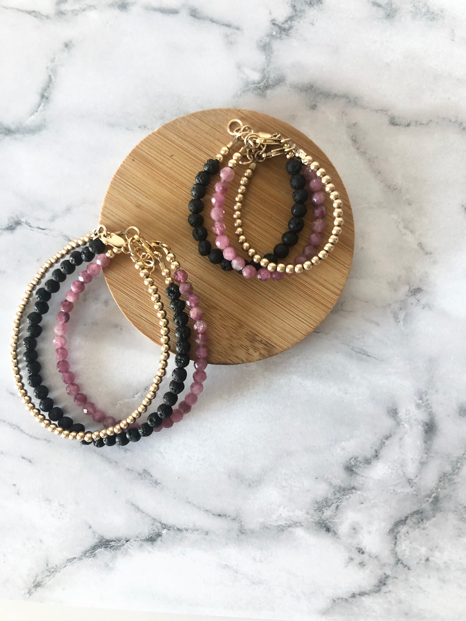 14k Gold Filled and Sterling Silver metals means your bracelet is tarnish and rust resistant. We wear ours around the clock (even in the tub/ shower!)
