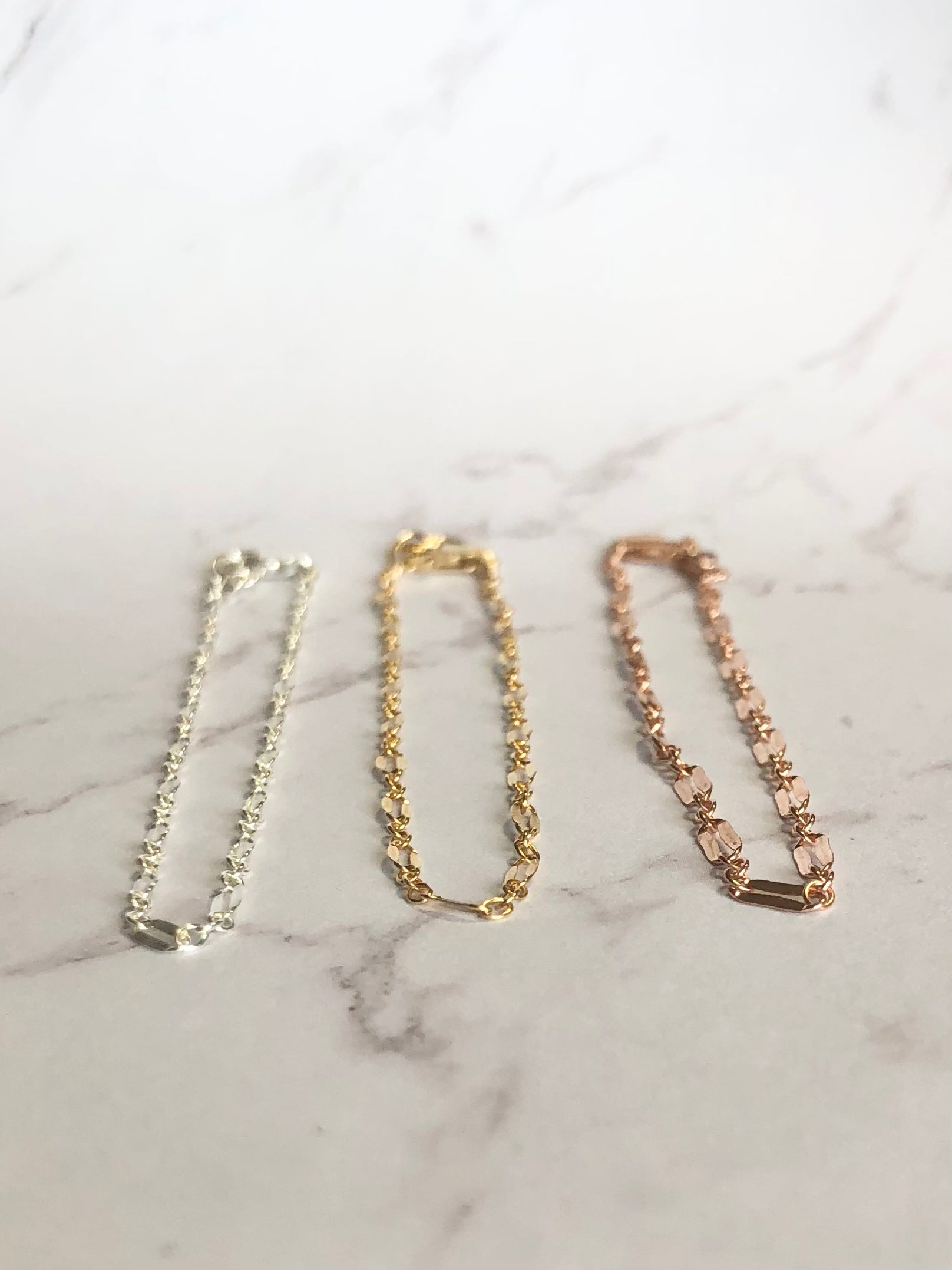 14k Gold Filled and Sterling Silver metals means your bracelet is tarnish and rust resistant. We wear ours around the clock (even in the tub/ shower!)
