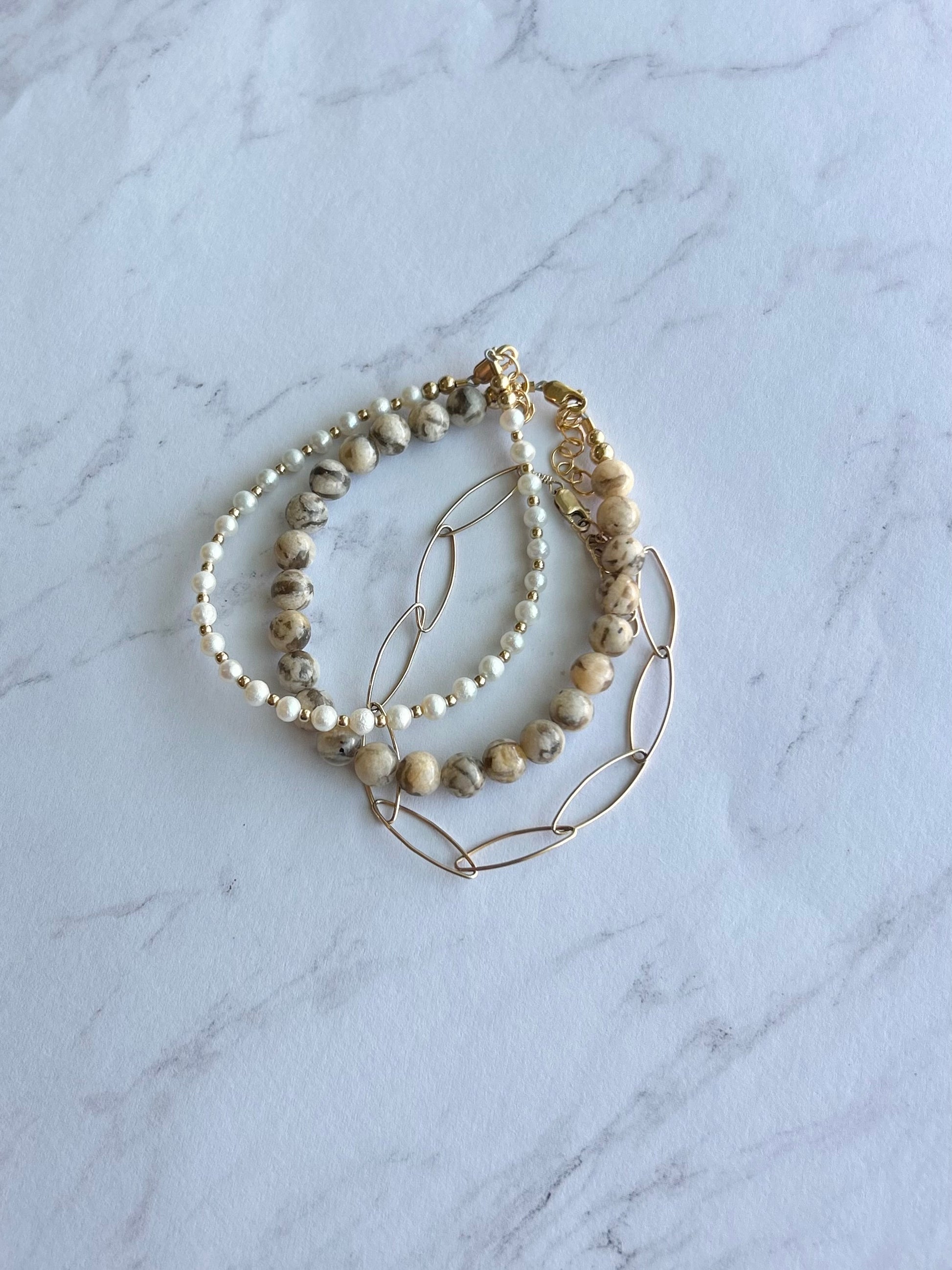 Gorgeous tan and brown hues marble together in the perfect neutral stone. This piece will blend seamlessly with your go to neutrals and sentimental pieces for a flawless everyday look!