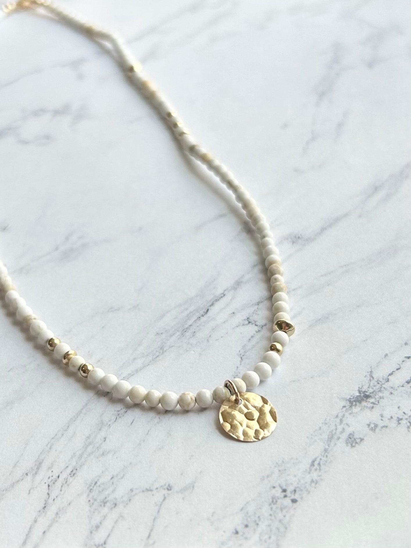 Casual + Chic- a Simply Faye style favorite! The scattered variety of gold beads + the textured disk bring the perfect bit of personality to this Textured Disk Beaded Necklace! Great to wear as a stand alone piece or pair with your favorite chain and/ or personalized necklace from Simply Faye.